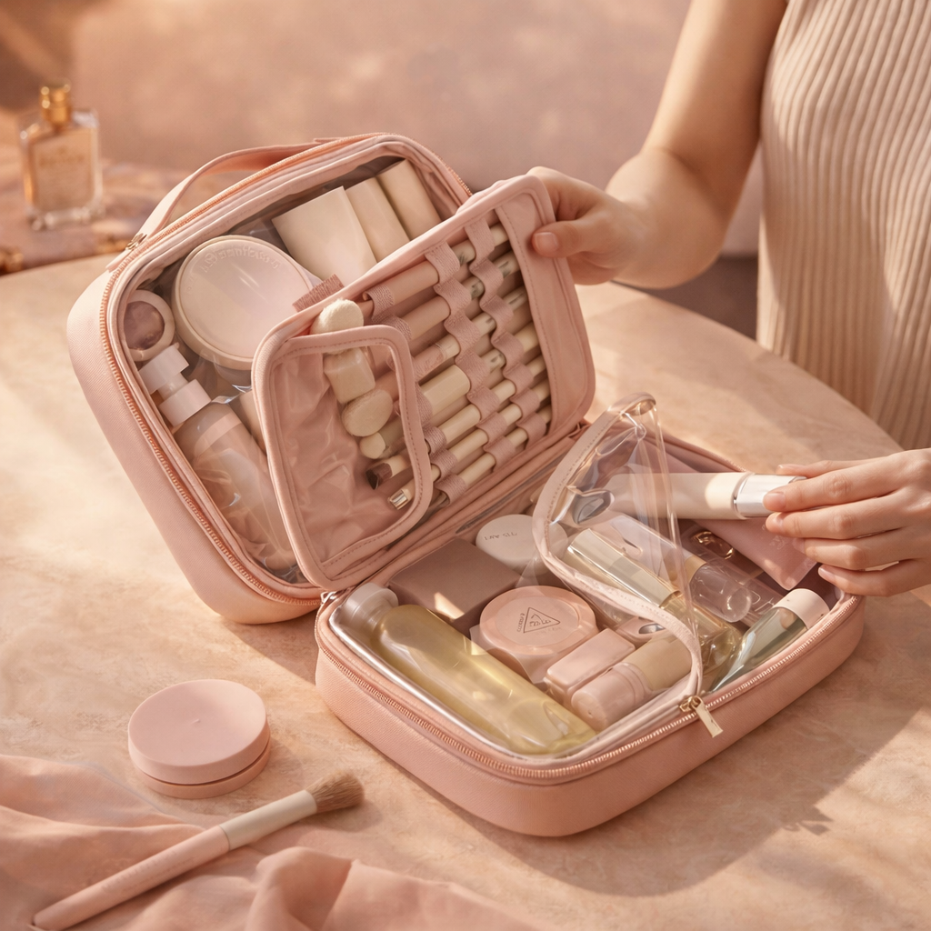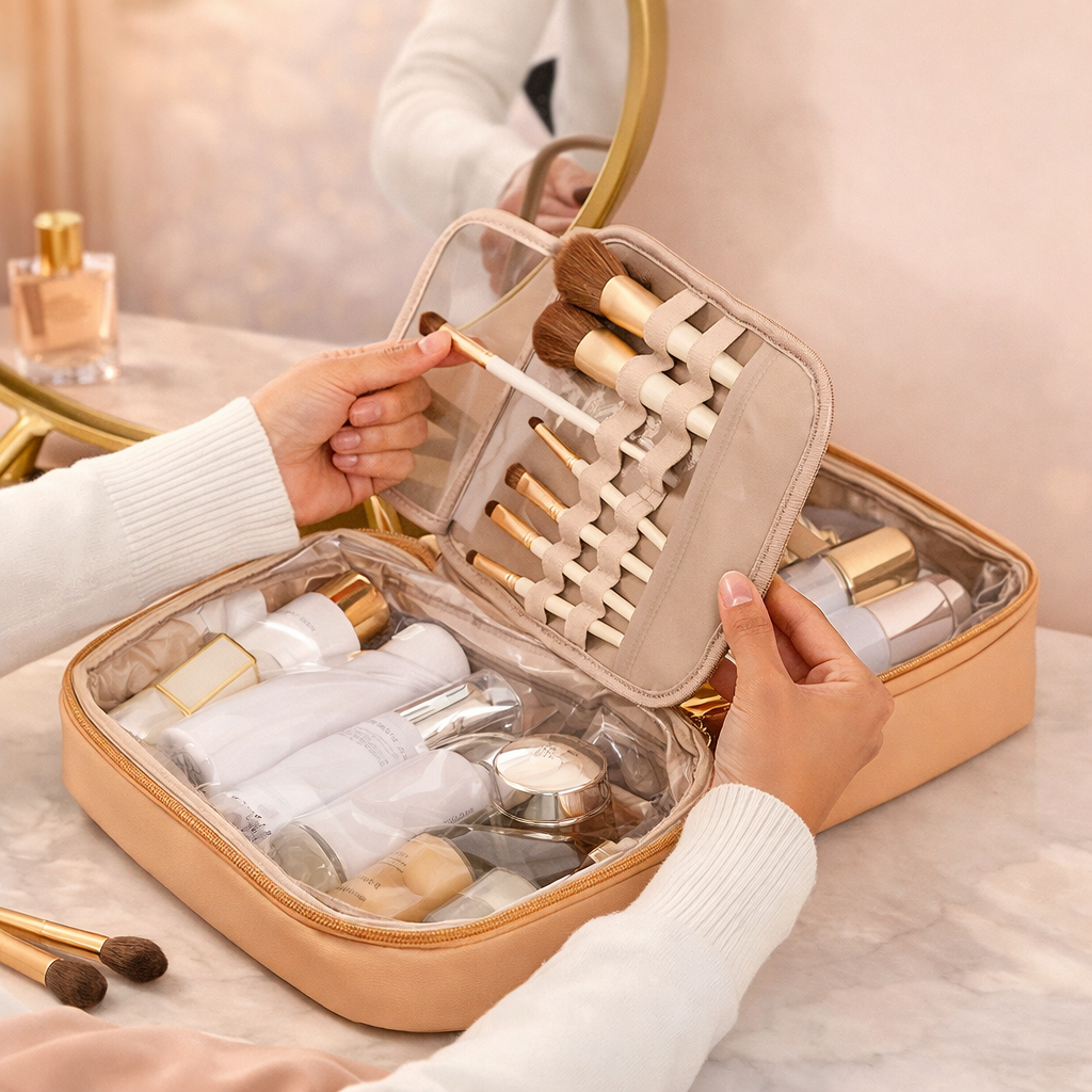 Keep your favourite jewellery and small beauty essentials neatly arranged with this compact travel vanity storage case. Designed for everyday organisation and travel convenience, its smart compartments protect delicate earrings, rings, bracelets and other accessories — without tangles or mess.